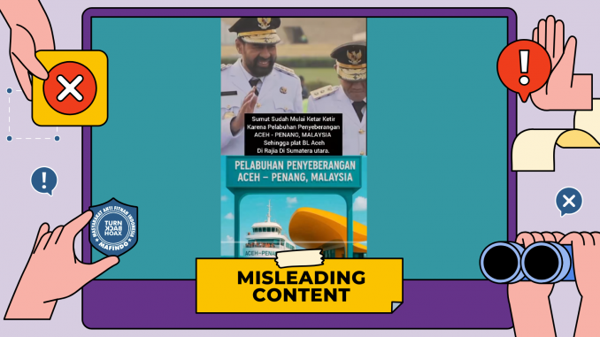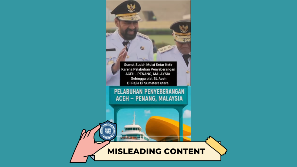 • Unggahan berisi klaim “plat BL Aceh dirazia di Sumut karena pelabuhan Aceh–Penang Malaysia” merupakan konten yang menyesatkan  (misleading content).