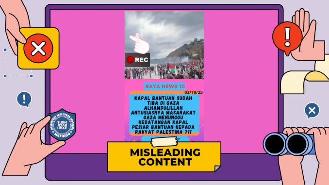 - TNI dikirim untuk misi kemanusian sejak 17 Agustus hingga 9 September 2025 untuk menyalurkan bantuan makanan dengan pesawat Hercules C-130J TNI AU dan tidak ada kaitannya dengan Sumud Flotilla. Video dalam klaim merupakan gambar dengan hasil Generate AI dengan Fake Probability 99,9%.