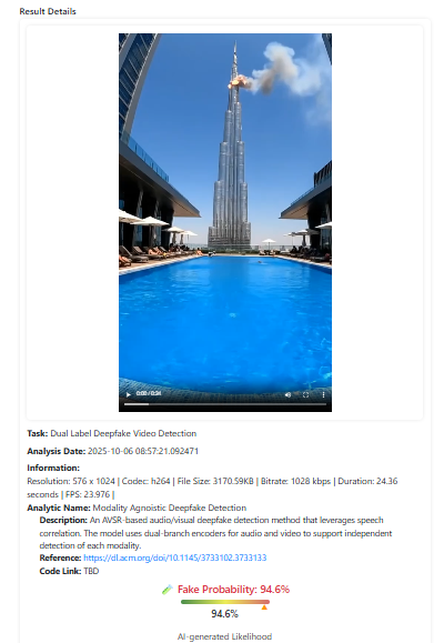 (Gambar tangkapan layar penelusuran gambar menggunakan situs deepfake-o-meter)