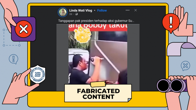 Unggahan video berisi klaim “Presiden Prabowo marah besar atas kebijakan pelat nomor kendaraan yang dilakukan Pemprov Sumut” merupakan konten palsu (fabricated content).