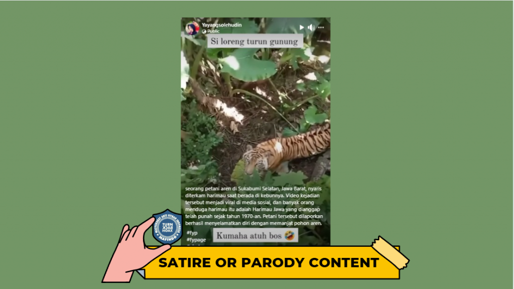 Video dengan klaim “Harimau Jawa Belum Punah” merupakan konten parodi (Satire or Parody Content).