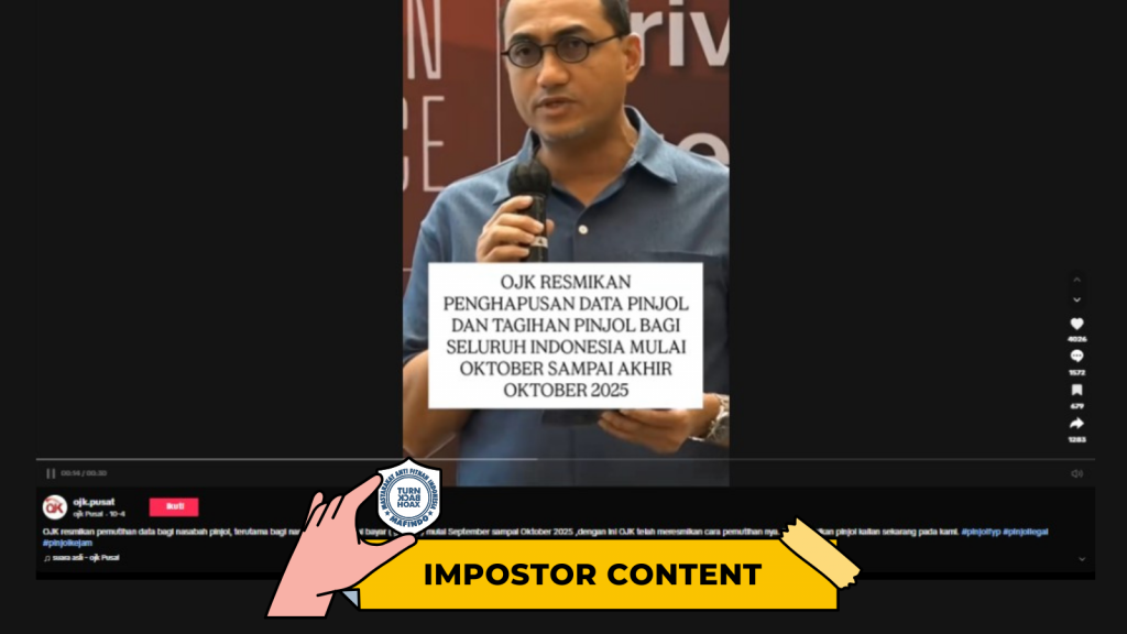 • Unggahan berisi klaim “OJK hapus data dan tagihan pinjol” itu merupakan konten tiruan (imposter content).