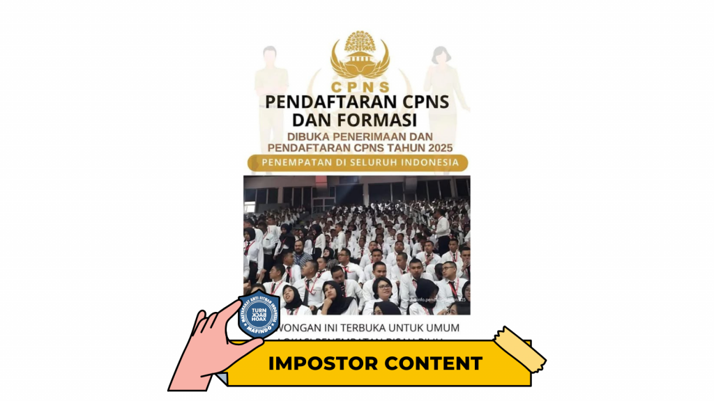 - Unggahan berisi “pendaftaran CPNS 2025 dibuka” merupakan konten tiruan (impostor content).