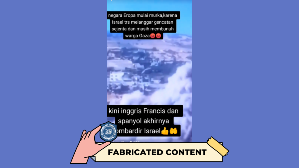 - Unggahan berisi klaim “Inggris, Prancis dan Spanyol bombardir Israel” merupakan konten palsu (fabricated content).
