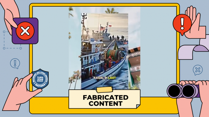 Unggahan video berisi klaim “TNI menangkap kapal nelayan Malaysia di Ambalat” merupakan konten palsu (fabricated content).