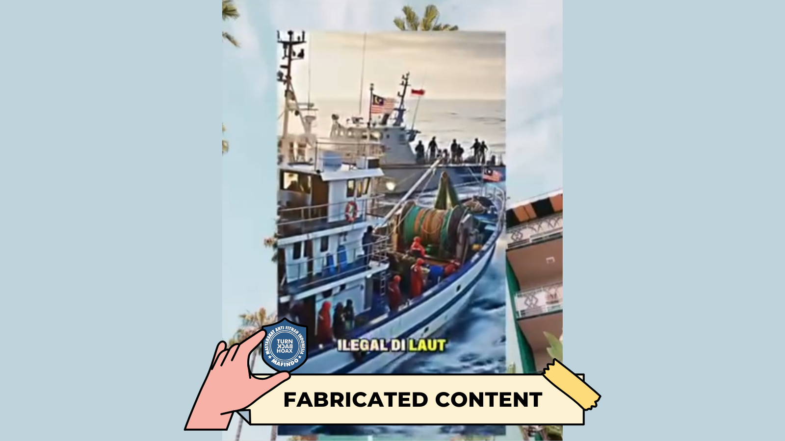 - Unggahan video berisi klaim “TNI menangkap kapal nelayan Malaysia di Ambalat” merupakan konten palsu (fabricated content).