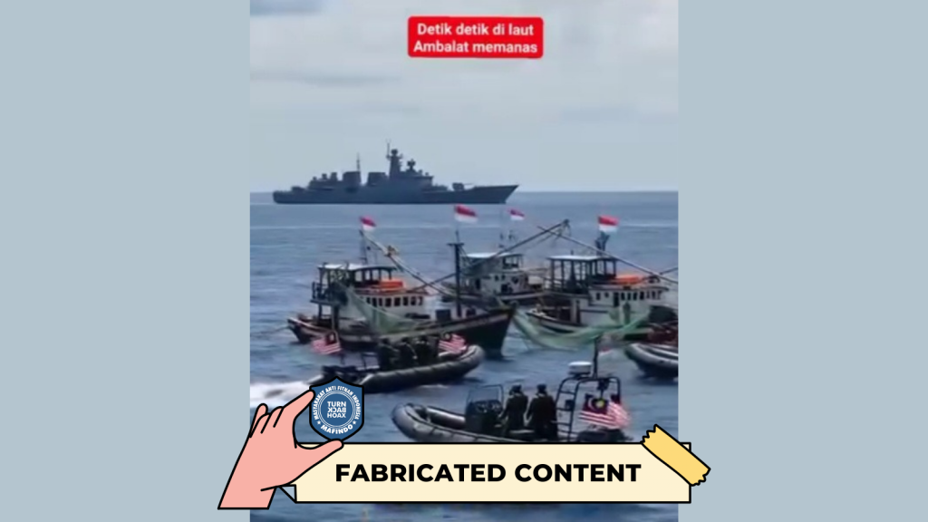 Unggahan video berisi klaim “pasukan militer Malaysia usir nelayan Indonesia dari Laut Ambalat” merupakan konten palsu (fabricated content).