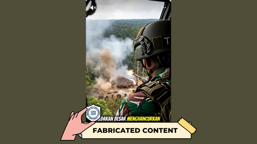 Unggahan berisi klaim “video serangan markas KKB lewat jalur udara” merupakan konten palsu (fabricated content).