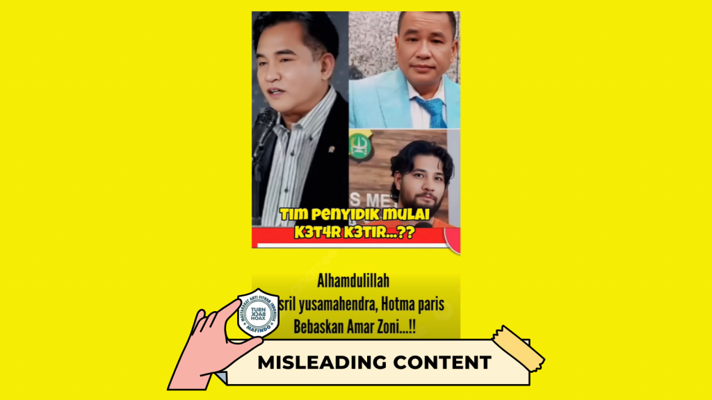 - Unggahan video berisi klaim “Menteri Yusril Ihza minta Ammar Zoni dibebaskan” merupakan konten yang menyesatkan (misleading content).