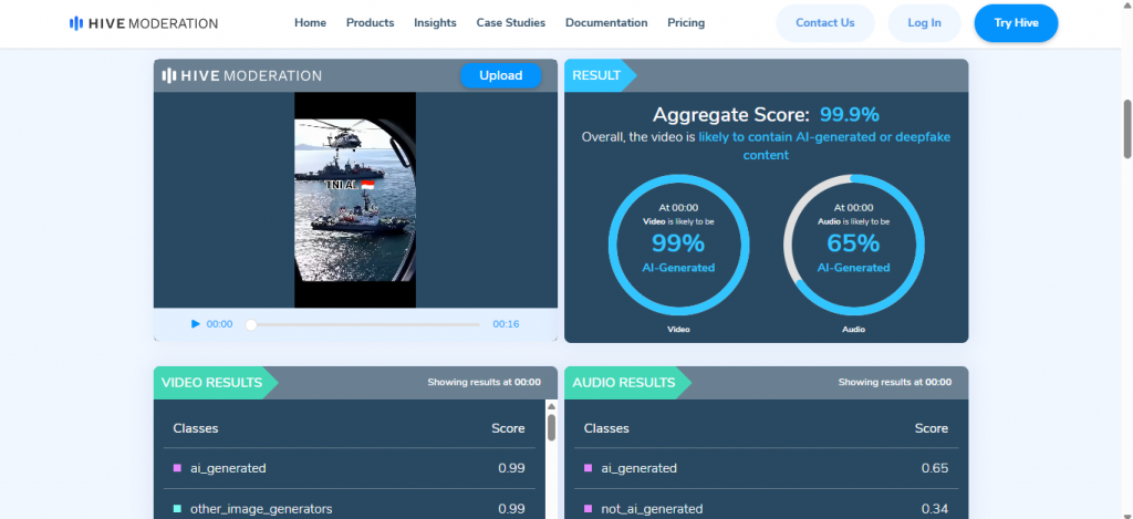 [SALAH] Video “TNI Kepung Kapal Malaysia di Kepulauan Seribu” November 4, 2025 Pemeriksa Fakta Junior Fitnah / Hasut / Hoax 0 Referensi https://hivemoderation.com/ai-generated-content-detection https://www.tribunnews.com/metropolitan/2025/06/25/wna-malaysia-ditemukan-tewas-di-atas-kapal-tanker-di-kepulauan-seribu-polisi-lakukan-penyelidikan https://www.cnnindonesia.com/nasional/20251007203231-20-1282056/kapal-nelayan-tenggelam-di-kepulauan-seribu-5-orang-hilang https://web.facebook.com/reel/24262327120061121 https://archive.ph/1zTnU 1 2