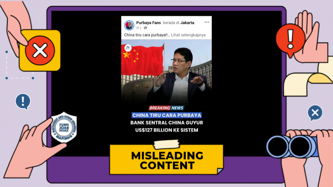Unggahan berisi klaim “China tiru cara Purbaya bank central china guyur uang ke sistem perbankan” merupakan konten yang menyesatkan (misleading content).