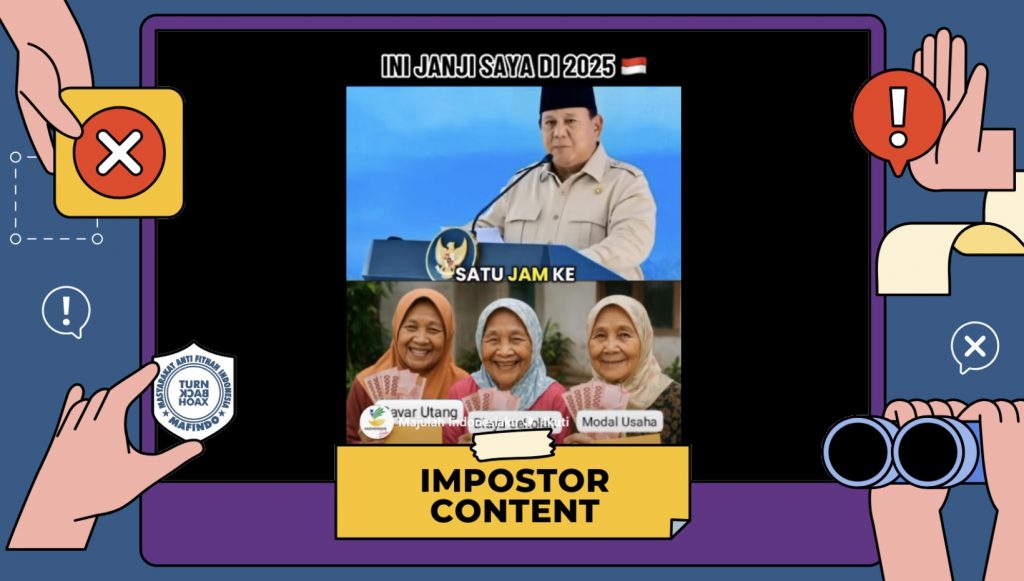 - Unggahan video berisi klaim “Prabowo mau transfer puluhan juta lewat chat via Messenger FB” adalah konten tiruan (impostor content).