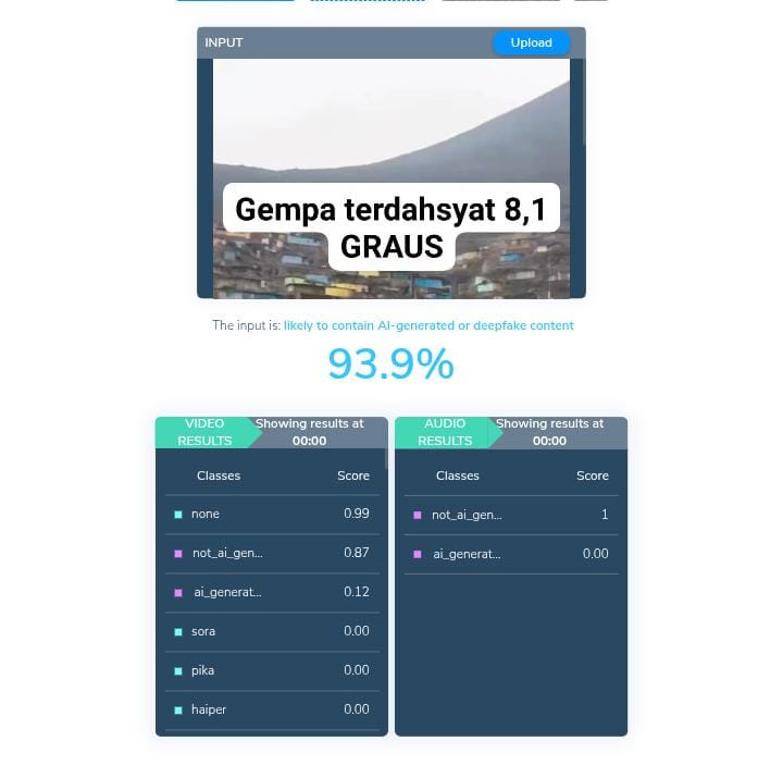 Dari pengamatan TurnBackHoax, terlihat ada kejanggalan dalam video tersebut, salah satunya kondisi pemukiman setelah gempa terdapat pepohonan yang masih berdiri sedangkan sebelum gempa pepohonan itu tidak terlihat. TurnBackHoax kemudian menganalisis konten menggunakan alat pendeteksi AI, Hive Moderation. Diketahui, konten merupakan hasil rekayasa kecerdasan buatan (artificial intelligence/AI), probabilitas atau kemungkinannya mencapai 93,9 persen.
