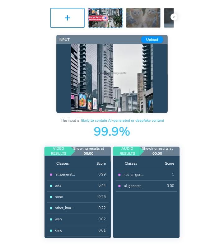 Dari pengamatan TurnBackHoax, terlihat ada kejanggalan dalam video tersebut, salah satunya adalah warna dan bentuk mobil yang berubah secara mendadak. TurnBackHoax kemudian menganalisis konten menggunakan alat pendeteksi AI, Hive Moderation. Diketahui, konten merupakan hasil rekayasa kecerdasan buatan (artificial intelligence/AI), probabilitas atau kemungkinannya mencapai 99,9 persen.